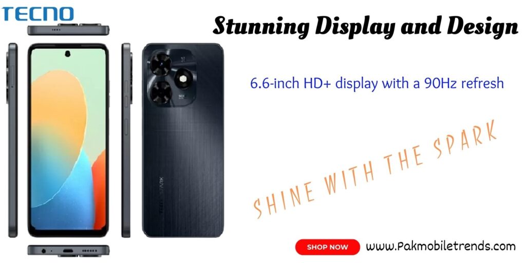 The Tecno Spark 10C boasts a 6.6-inch HD+ display with a 90Hz refresh rate, offering smooth scrolling and vibrant visuals. Whether you’re streaming videos, playing games, or browsing social media, the display ensures an immersive experience. Its sleek design, available in multiple colors, adds a touch of elegance to the device.